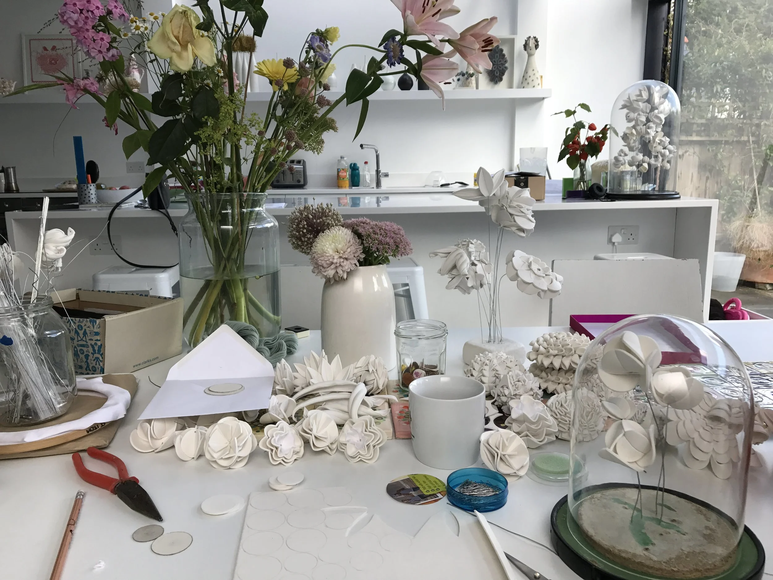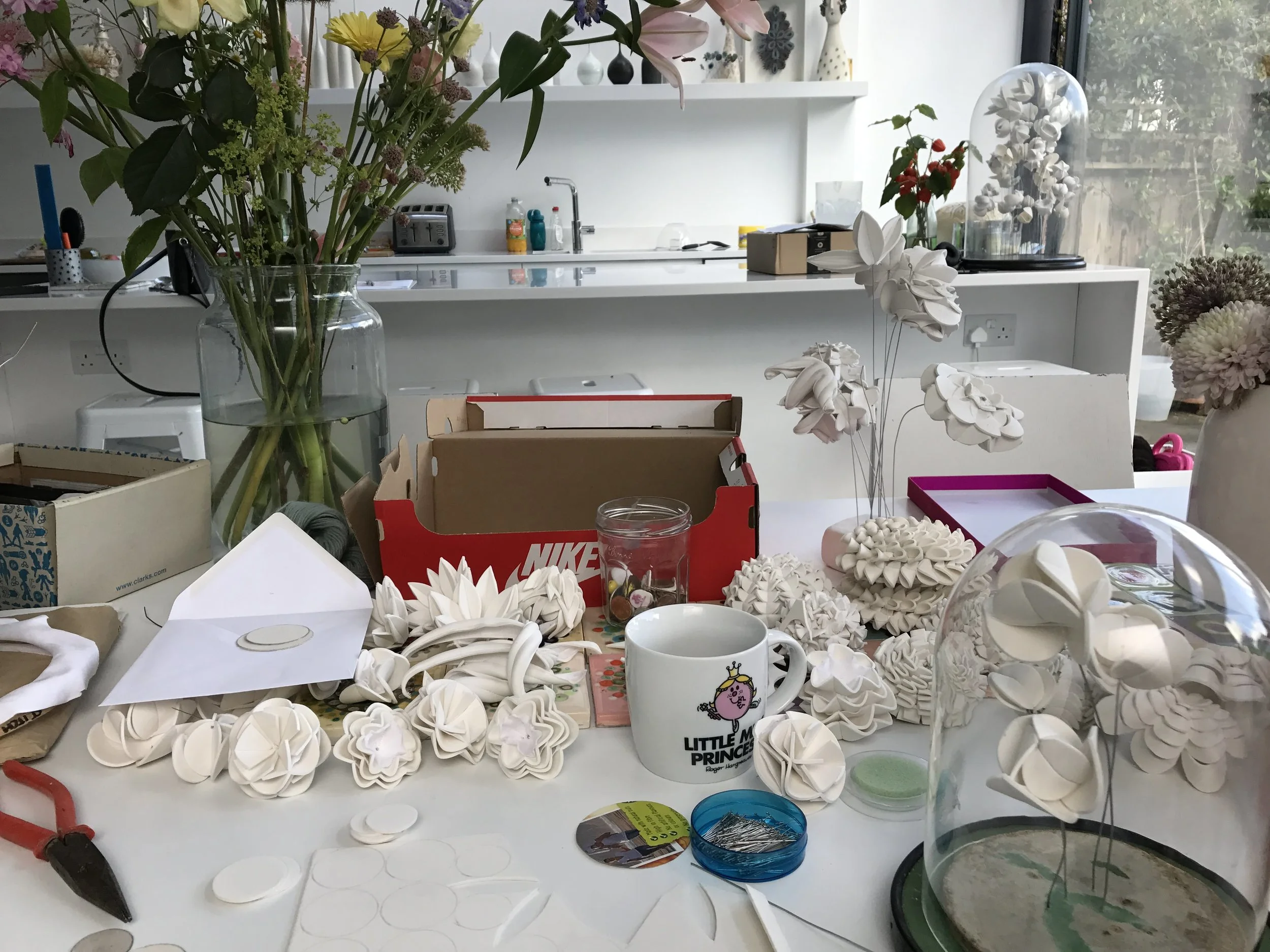 Inspired by their complex forms, I recreate their individual structures using a fabric manipulation technique. Each flower is stitched individually, every one unique.